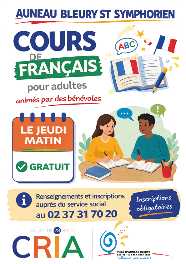 Des cours de français gratuits pour adultes, sur inscription obligatoire, sont désormais proposés à Auneau-Bleury-Saint-Symhorien. Ces ateliers, animés par des bénévoles engagés, se déroulent chaque jeudi matin dans une ambiance conviviale, respectueuse du rythme de chacun.