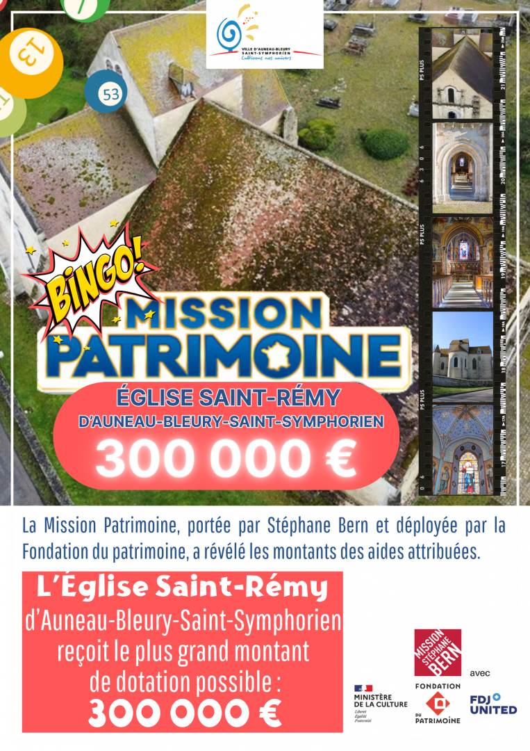 - Église Saint-Rémy d’Auneau-Bleury-Saint-Symphorien (Eure-et-Loir) : 300 000 €