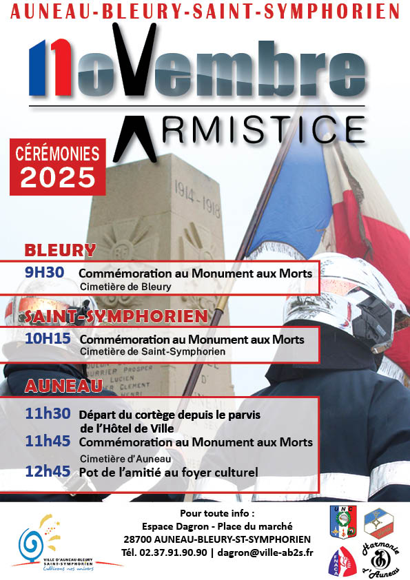 - 11h45 : Commémoration au Monument aux Morts - Cimetière d'Auneau