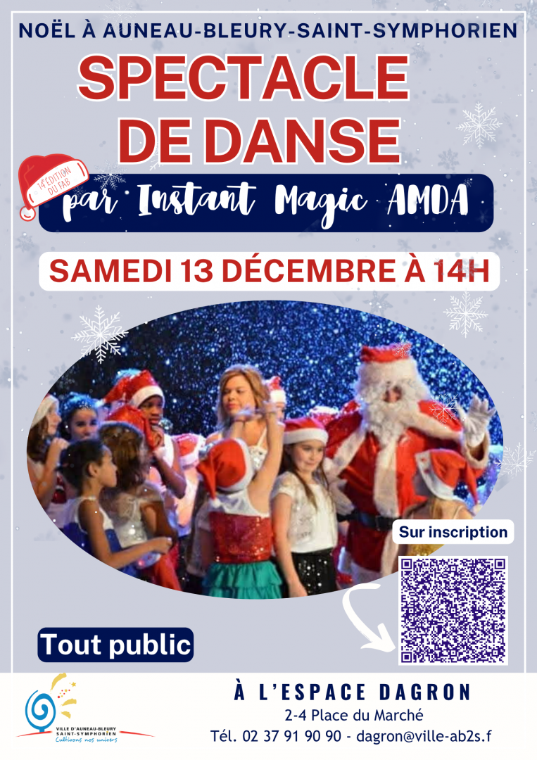 Dans le cadre du 14e Festival Avant la Bûche, INSTANT MAGIC et AMDA vous donnent rendez-vous à l'Espace Dagron pour un spectacle de danse le samedi 13 décembre à 14h.